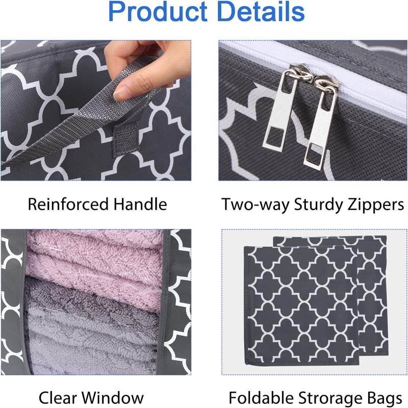 - Space-Saving: These storage bags come with a stylish design, and the grey floral pattern complements any decor. The organization bags are simple to fold and store when not in use, being compact and not taking much space. Each one is fitted with a two-way #5 zipper, allowing for easy movement and sturdy enough for everyday use.