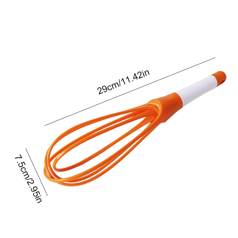 2-in-1 Design: The silicone whisk features a versatile design that allows for switching between a flat whisk and a balloon whisk simply by rotating the handle. A gentle twist transforms it into an ergonomically designed round tool.