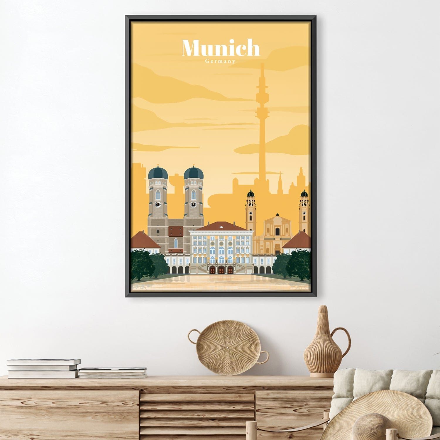 Add a touch of elegance to any empty wall in your home with this stunning piece of artwork. This canvas showcases an abstract representation of Munich, Germany. Artist: Studio 324