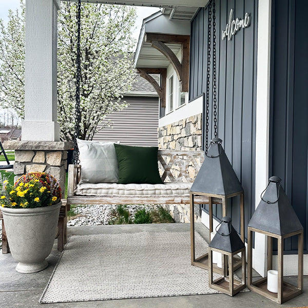 - Stylish metal caps: Each lantern is adorned with a metal top that incorporates a hint of industrial flair into the design. The combination of wood and metal results in a striking visual contrast that pairs well with a variety of decor styles.