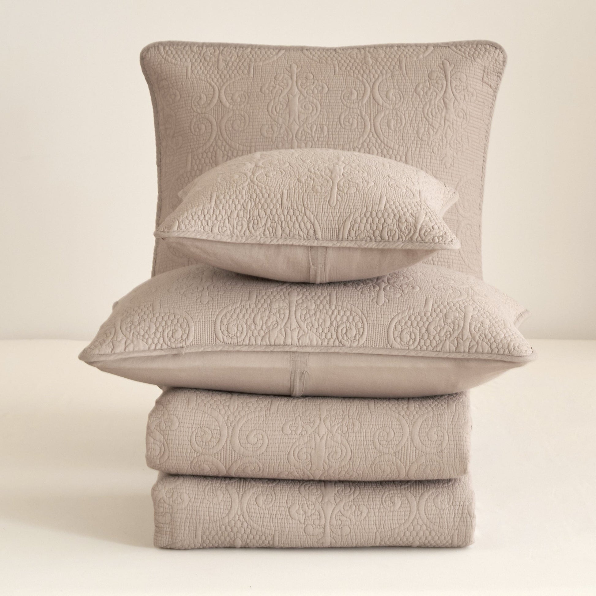 Rynx | Neutral Taupe Beige Sandy Elegant Matelassé Cotton Quilted Bedspread Set