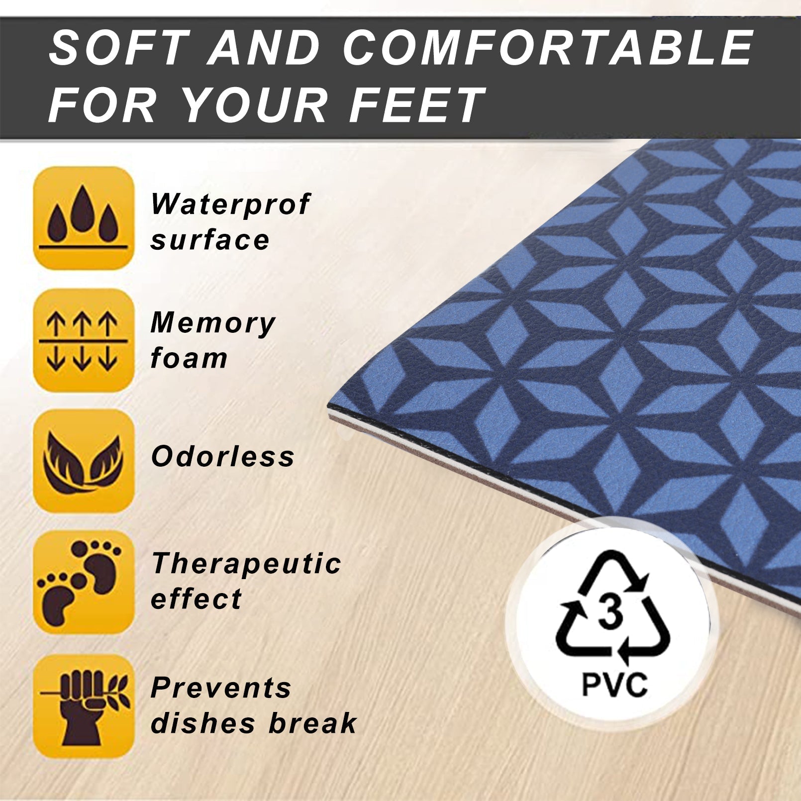 2. Comfortable and non-slip: The PVC leather surface offers a pleasant feeling underfoot. It helps reduce fatigue while cooking and washing dishes. The 6 mm thick, pressure-resistant foam backing effectively protects against dishware that might accidentally fall.