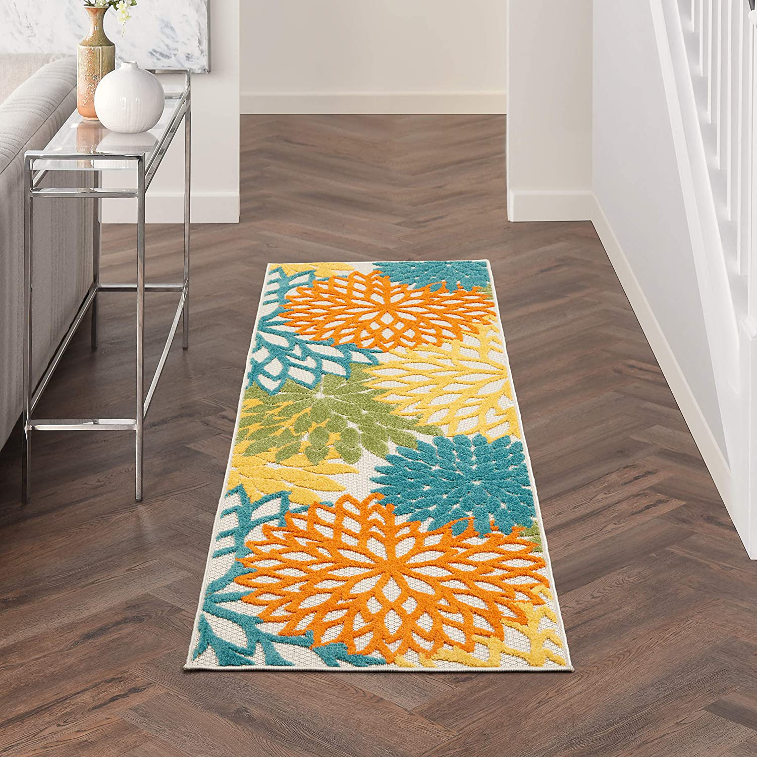 Rynx | Nourison Aloha Indoor/Outdoor Flower Turquoise Multicolor 2'3" x 8' Area Rug, (8' Runner)