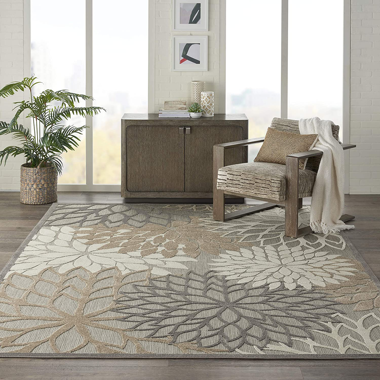 This vibrant and stunning collection of flatwoven rugs for both indoor and outdoor spaces is not only beautiful but also practical and perfectly suited for high-traffic areas. Featuring a welcoming array of classic and modern designs, appealing color palettes, and exquisite textures, these versatile rugs provide effortless elegance to any setting. Made from 100% polypropylene, woven in soft shades of gray, cream, taupe, and sand, this Nourison outdoor rug injects vitality and energy into your patio and pool area. The high-low textures merge luxurious patterns with a detailed woven foundation for an exceptional look and feel that withstands harsh conditions. Crafted from premium stain-resistant fibers for enduring use, easy maintenance, and a wonderful texture.