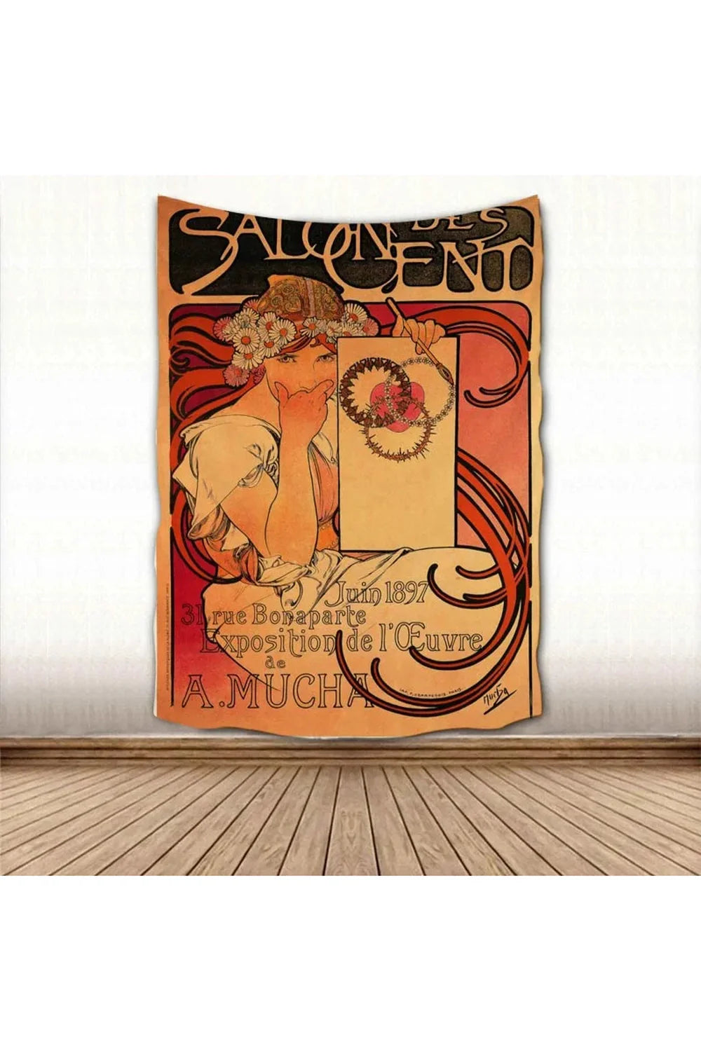 This wall art featuring the Zodiac goddess in Art Nouveau style captures a lasting charm, showcasing a fashionable lady surrounded by Zodiac symbols. This tapestry, rich in nostalgia, embodies celestial grace and enigmatic beauty, ideal for Boho-inspired interiors, retro settings, or astrology-themed spaces.