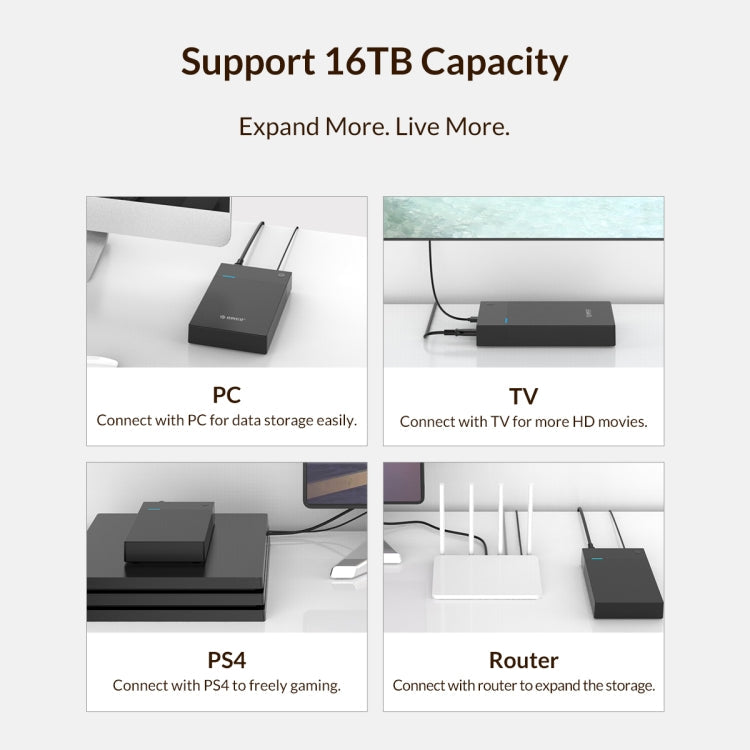 Rynx | ORICO 3599U3 2.5 / 3.5-Inch Portable Hard Drive Enclosure, EU Plug