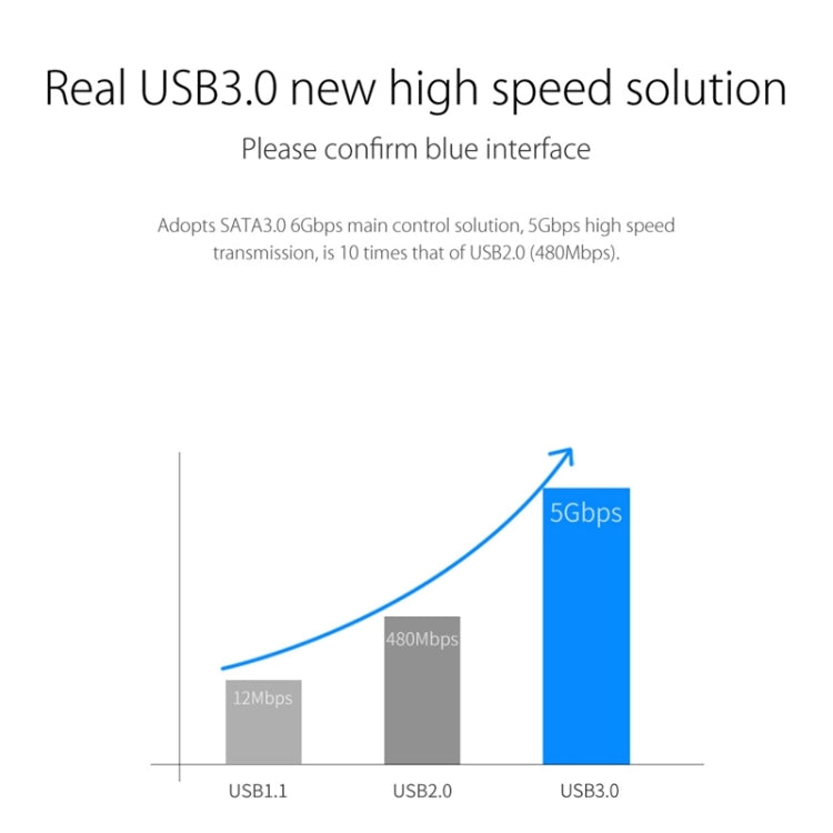 3. Genuine USB 3.0 high-speed solutions, utilizing SATA 3.0 6Gbps main control solution, delivering 5Gbps high-speed transfers, which is 10 times faster than USB 2.0