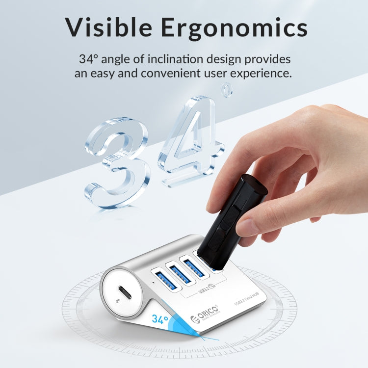 Rynx | ORICO M3CU2 Aluminum alloy 4-Port Type-C and USB 3.2 Gen2 10Gbps HUB (Silver)