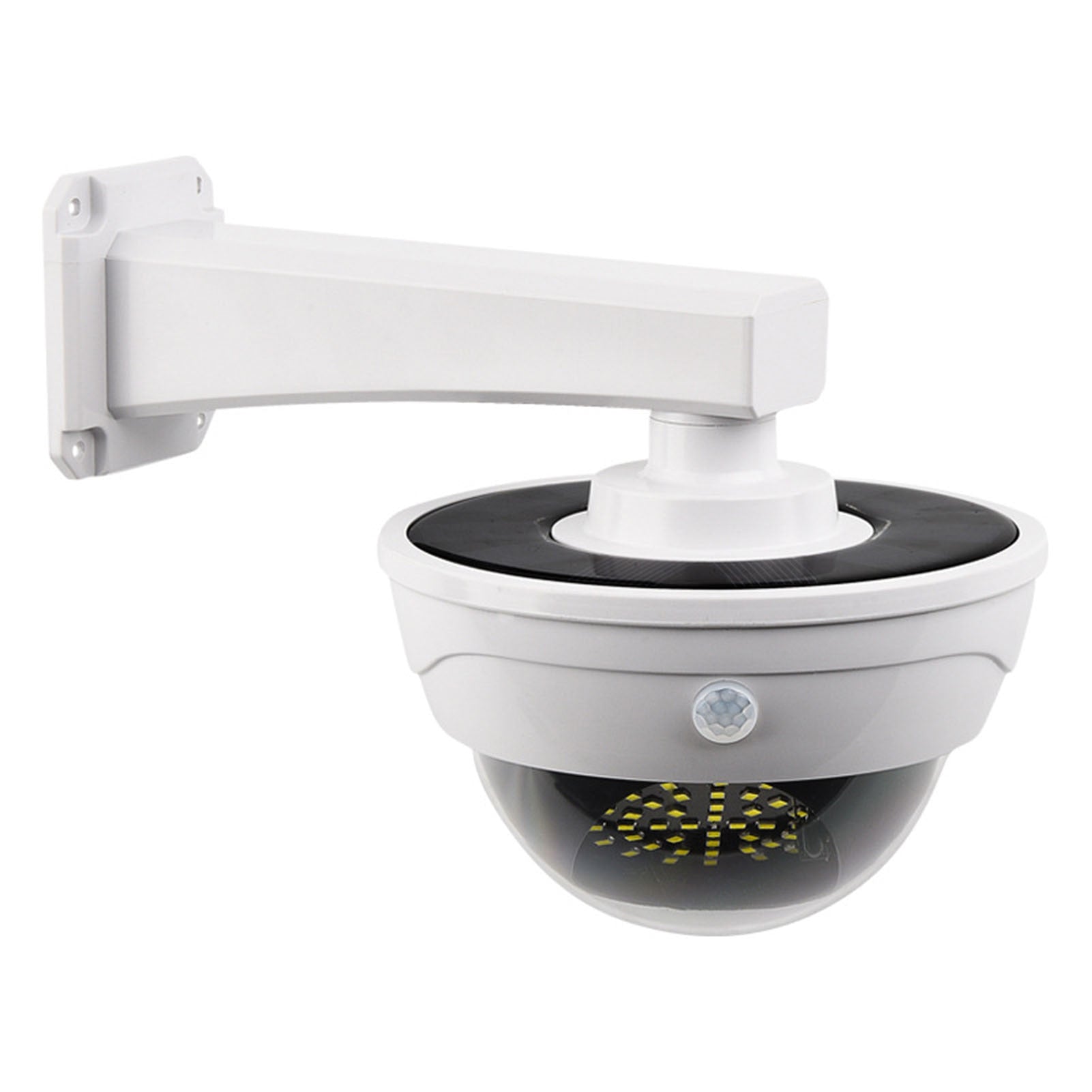 This dummy security camera represents an ideal combination of modern design and security, aimed at safeguarding your home or business. It replicates the look of a sophisticated surveillance system, effectively acting as a deterrent for would-be intruders.