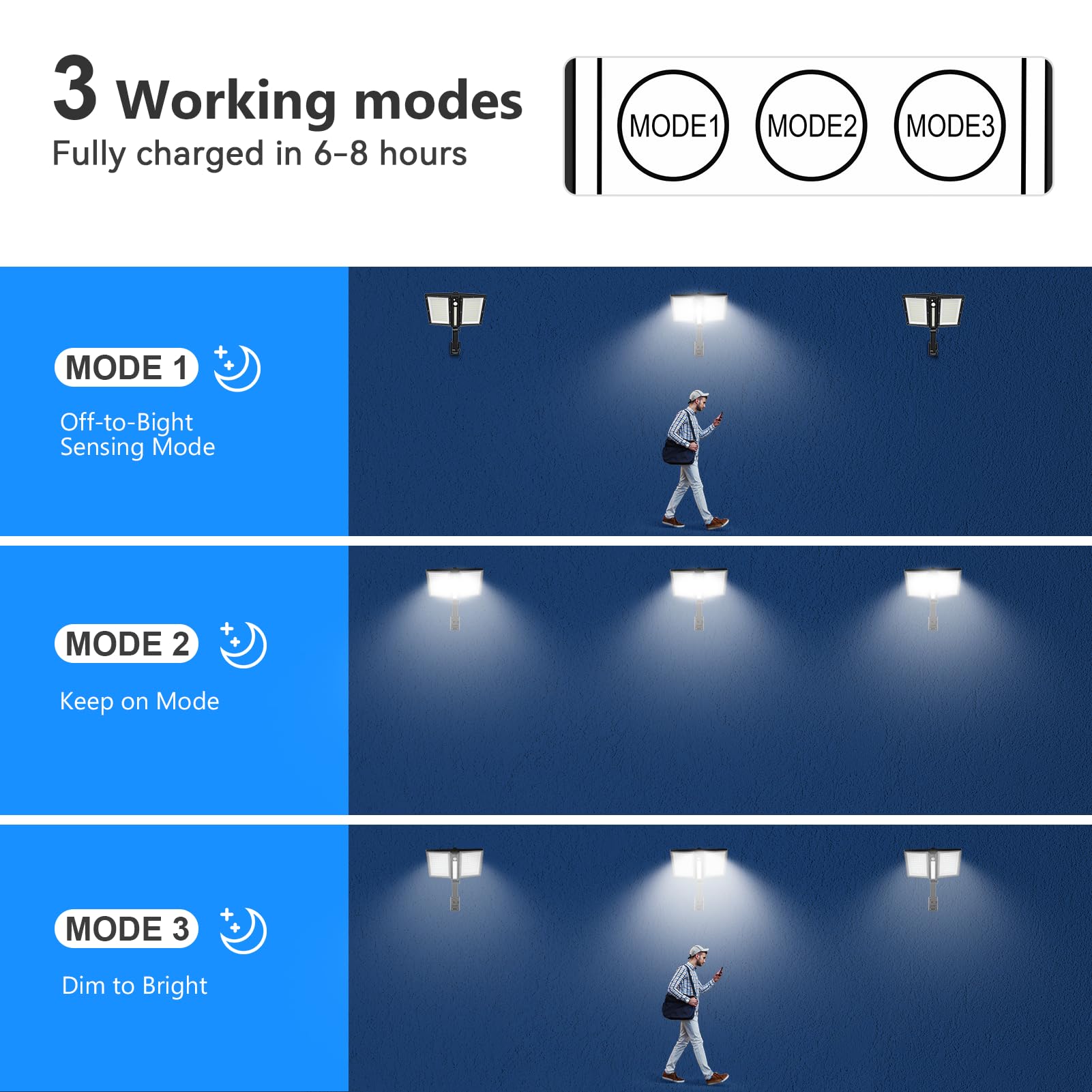 - Upgraded Solar Efficiency: Equipped with two large solar panels and 180 high-performance LED beads, this light has a conversion rate of up to 22%, providing double brightness compared to traditional solar lights. The robust 3600mAH battery ensures long-lasting illumination, even on cloudy days.