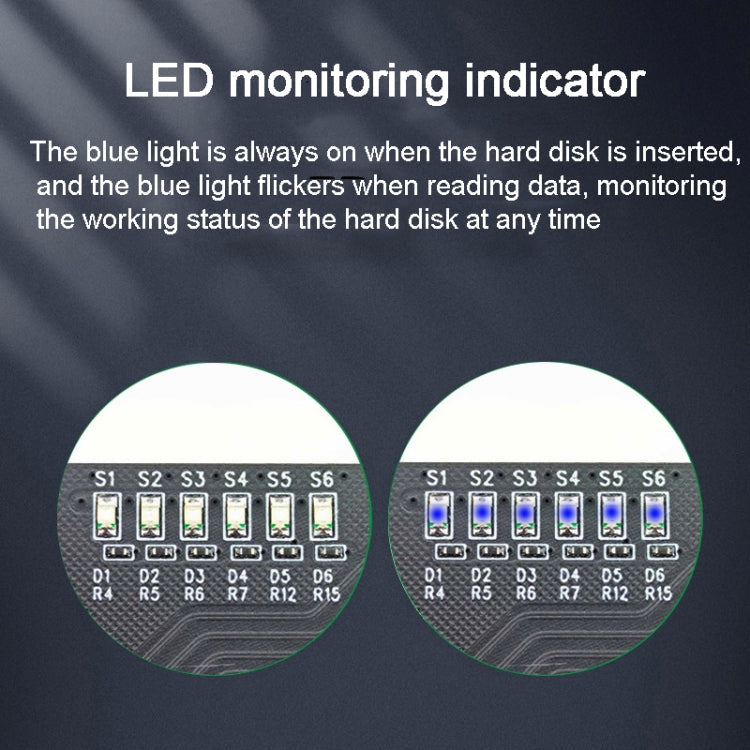 3. The LED monitoring indicator shows a steady blue light when the hard drive is connected and blinks during data access, allowing you to keep track of the hard drive's operational status at all times.