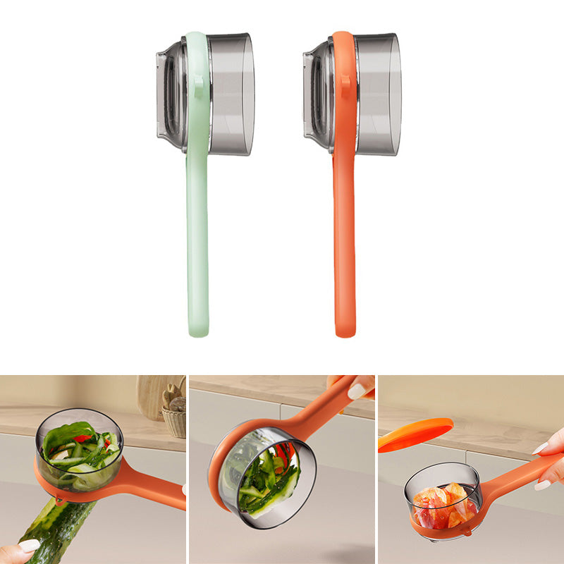PRACTICAL FOR USEThis peeler is designed for quick and repetitive peeling of potatoes, apples, cucumbers, and other firm fruits and vegetables. The handy peeler with a container collects the peels to keep your workspace tidy.