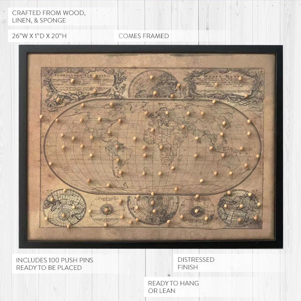 Mark your journeys by inserting push pins in thrilling destinations you've explored, creating a stunning visual story on your wall. The vintage-inspired design and rustic aesthetic seamlessly integrate into your country house decor, enhancing your space with a classic and significant touch.