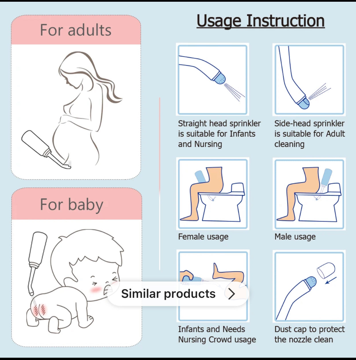 Perfect for cleaning the posterior of both infants and adults, providing a refreshing and sanitary feel all day long