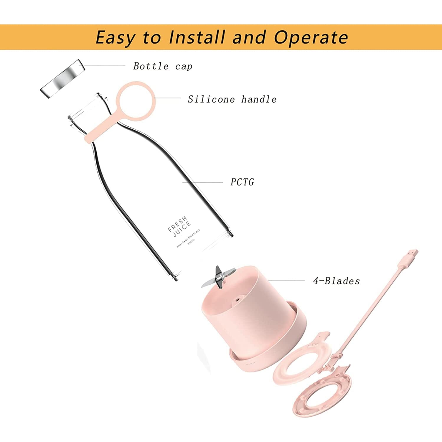 - Portable Size: The compact blender can be transported just like a water bottle and holds up to 350 ml of juice, weighing only 460 g. With an attractive design, it's easy to carry along. After juicing, simply swap the base with a lid and you can take it anywhere right away. It is perfect for use at home, the office, school, or while traveling.