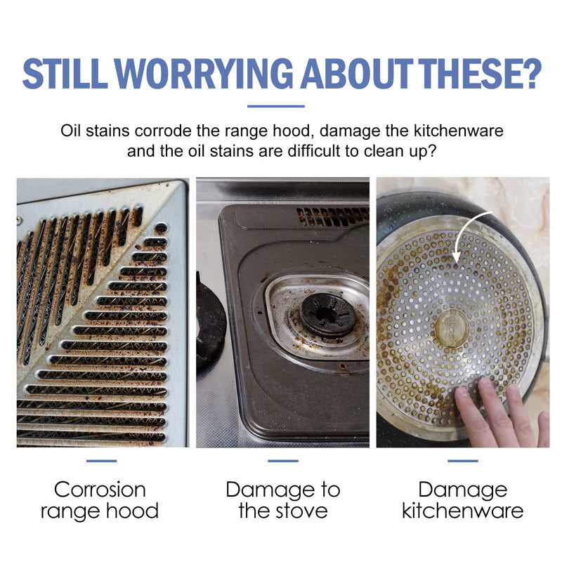 A handy tool for eliminating grease stains. Perfect for various surfaces including hoods, pots, countertops, stovetops, sinks, faucets, tiled walls, floors, and more.