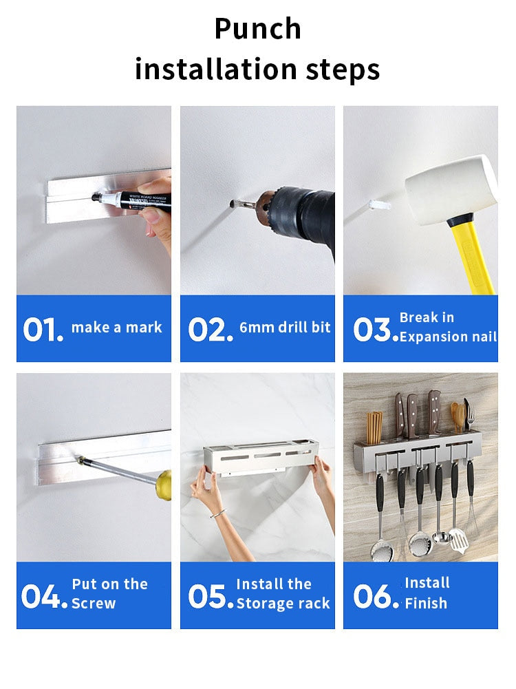 The Punch-free Kitchen Tableware Storage Rack is a great way to store your knives, forks, and spoons. The rack has multiple slotting holes for your utensils so you can easily find what you need.