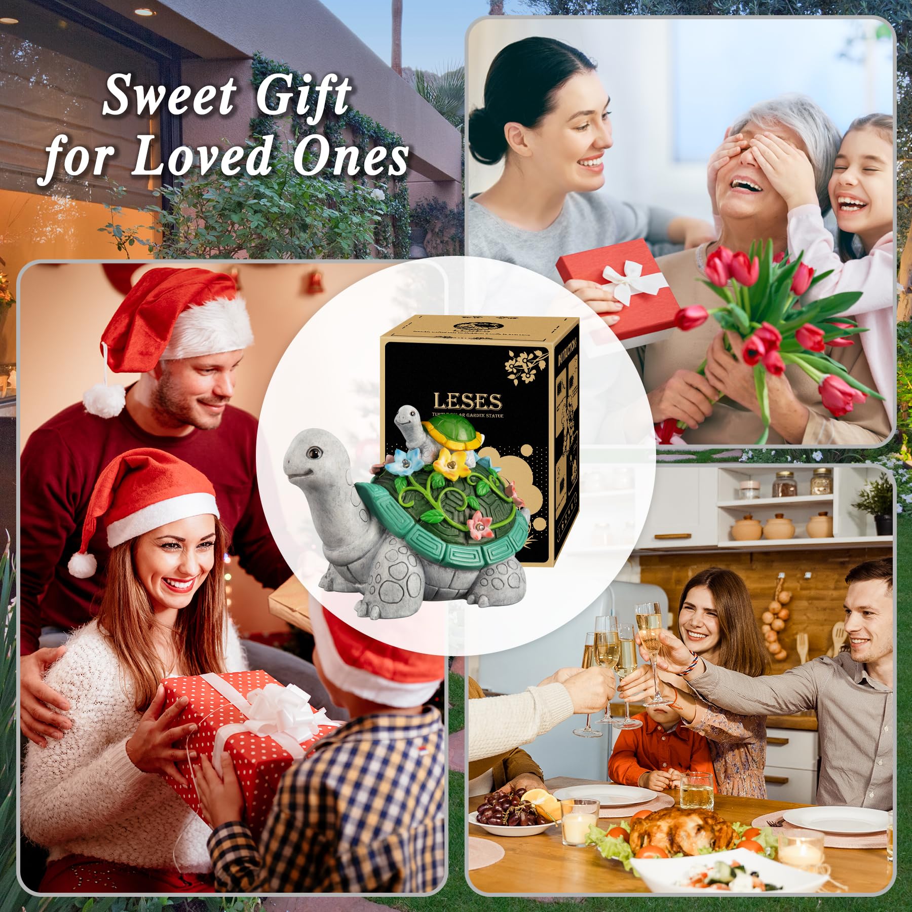 Rynx | Reading Turtle Solar Statue Garden Decoration With 7 Led Lights - Cute Resin Figures For Garden