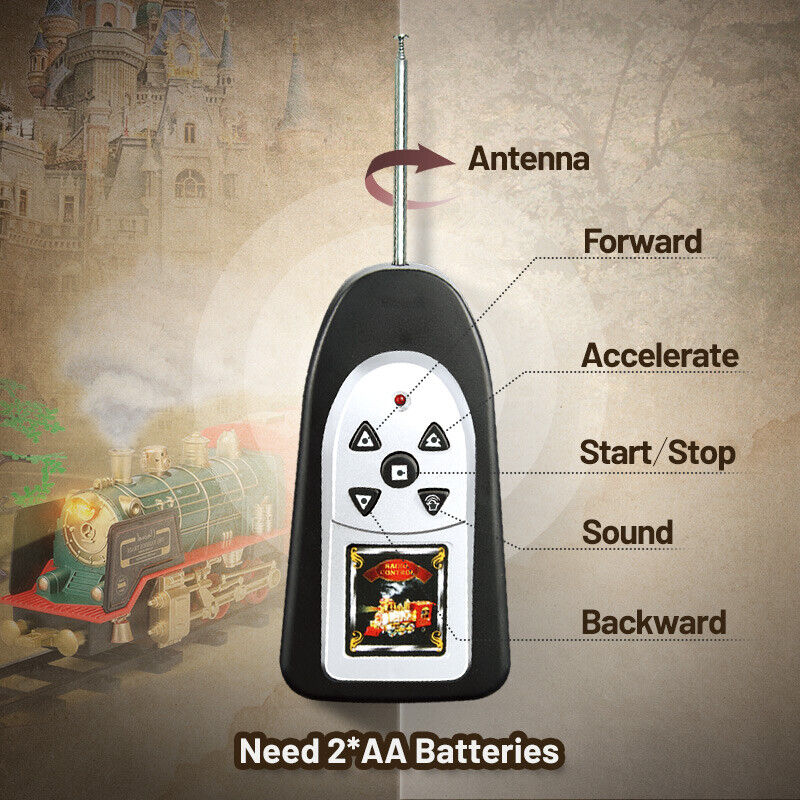 Experience the charming nostalgia of the Remote-Controlled Vintage Classic RC Train Playset, a captivating fusion of traditional flair and contemporary technology. Be enchanted by the real smoke emission from the train, creating a unique atmosphere for your play experience. With realistic lights and engaging sounds, this toy brings the spirit of a classic train right into your home.