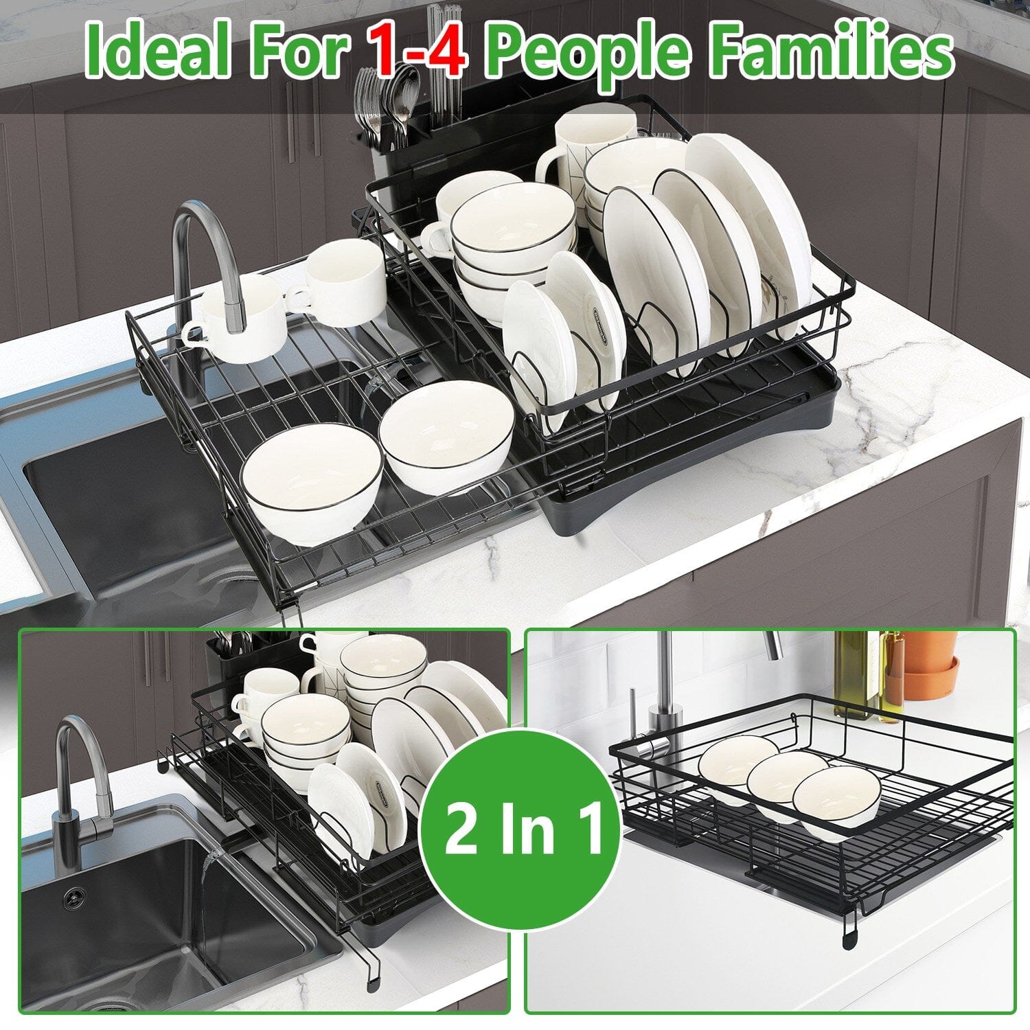 - Expandable for extra-large capacity: This expandable dish rack offers an adjustable design for significant capacity, allowing you to place it over the sink to dry 20 bowls, 20 sets of cutlery, 10 knives, and 10 plates while also being retractable to save 45% space on your countertop.