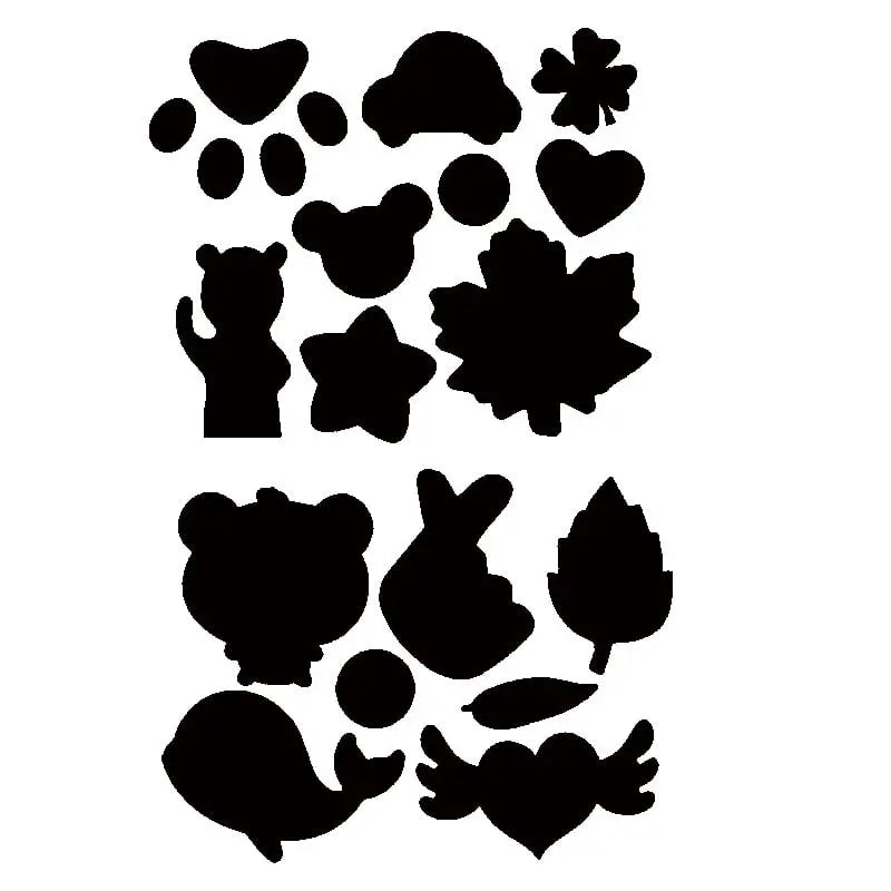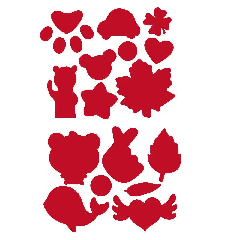 Design options: 16 various shapes (including animals, leaves, circles, etc.) for each set