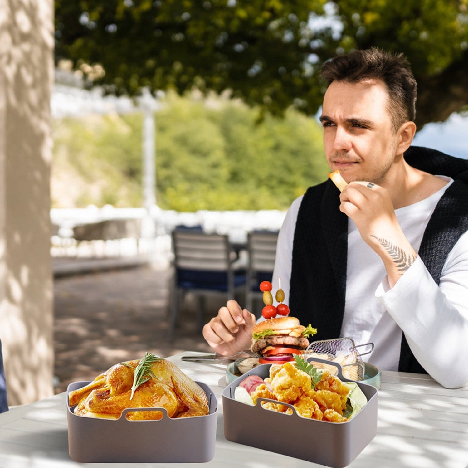 - Thoughtful Raised Bottom: Equipped with symmetrical and raised lines on the bottom, it aids in better air circulation and even heat distribution, while allowing excess oil to gather at the bottom, preventing food from absorbing it.