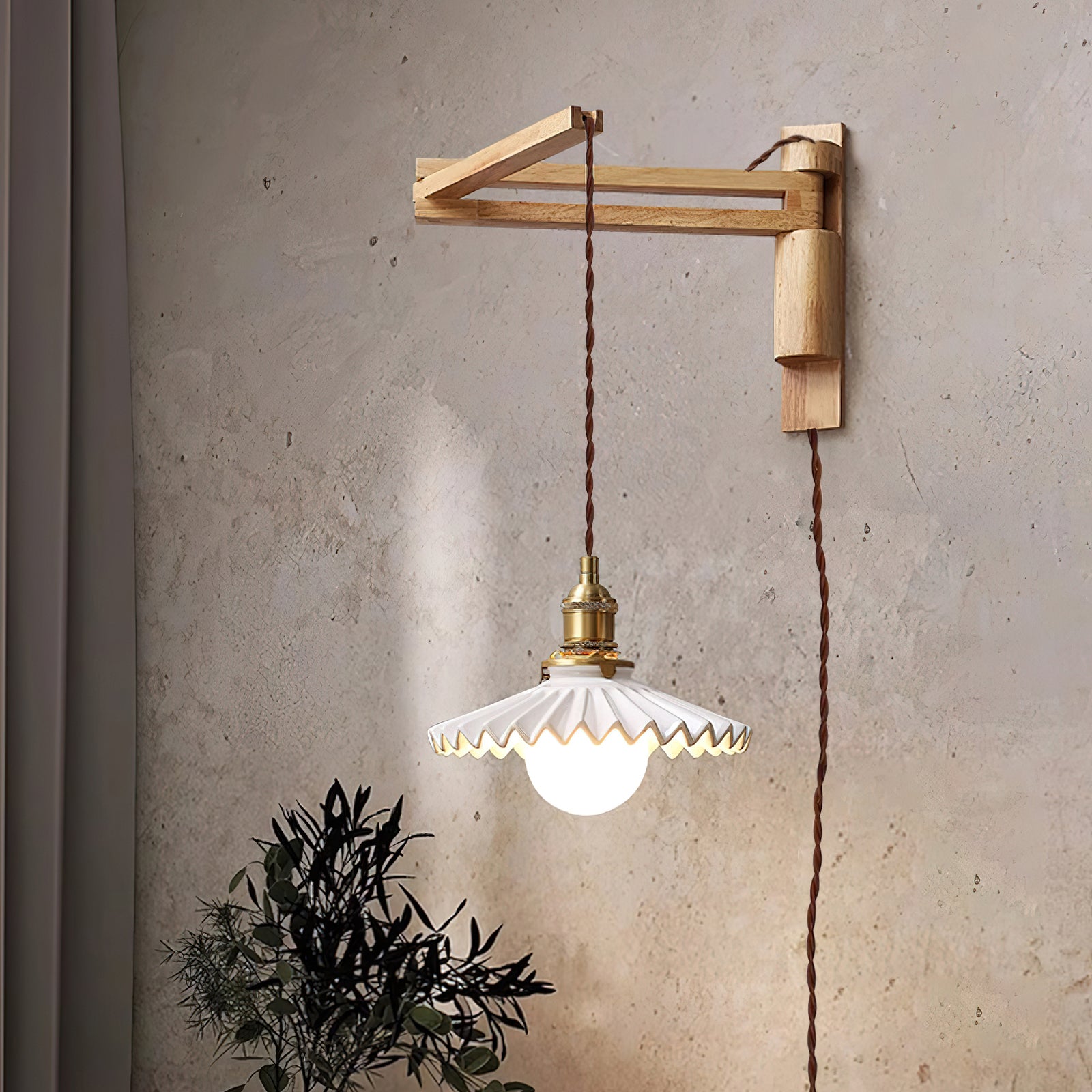 The Rigale Plug-In Wall Lamp by rynx combines rustic charm with modern functionality, featuring a wooden arm and adjustable hanging fixture. Available with various shade options, it provides versatile lighting solutions for any room. The plug-in design allows for effortless setup and flexibility in placement. Illuminate your home with the stylish and practical Rigale Plug-In Wall Lamp from rynx, perfect for enhancing your décor with a unique flair.