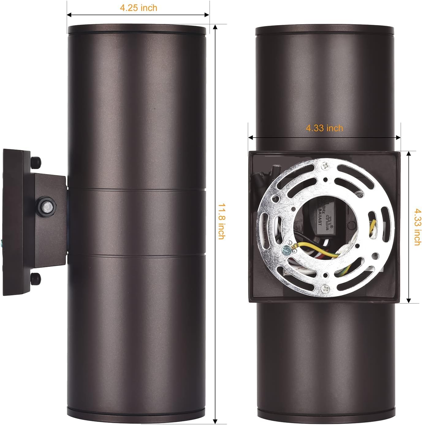 Key Features: - **Dusk to Dawn Sensor:** Equipped with a built-in high-sensitivity IC sensor (UL listed), this outdoor wall lantern automatically turns on at night and off during the day, providing you with convenient lighting for your outdoor needs. - **Included LED Bulbs:** Comes with 2 pcs E26 A19 LED filament bulbs (UL listed), which provide bright light while being energy-efficient. The upward and downward light design adds a modern touch that fits any outdoor area. - **Durable Construction:** Made of sturdy die-cast aluminum with an oil-rubbed bronze finish, this light fixture is built to withstand the elements. It has an IP54 waterproof rating, ensuring it can withstand rain and unfavorable weather conditions, making it a reliable choice for outdoor use. - **Easy Installation:** Make upgrading your lighting easy with straightforward installation. The package includes all necessary mounting hardware, allowing you to mount this elegant wall lantern easily in just three simple steps. - **Versatile Design:** The cylindrical shape and minimalist style enhance the appearance of your home. Ideal for various settings, including garages, entryways, doors, yards, hallways, and corridors, it adds elegance to any modern aesthetic.