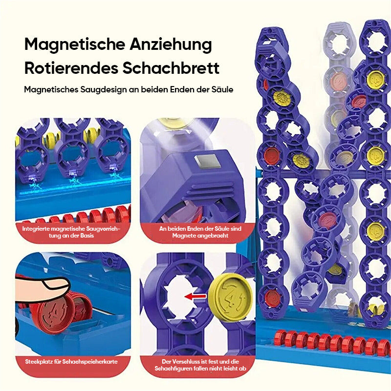 Interactive Learning: The 4-in-a-line rotating game encourages active thinking as well as hand-eye coordination in children while they play. Positioning the chess pieces and turning the column requires control of arm muscles, enhances coordination and mental agility, and contributes to overall cognitive and physical development.