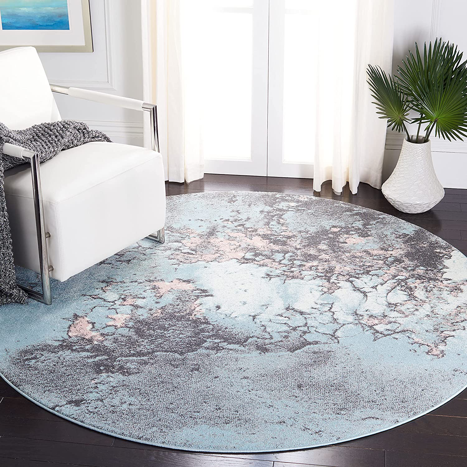 - One (1) Safavieh Glacier Collection GLA125L Modern Abstract Non-Shedding Stain Resistant Living Room Bedroom Area Rug 3' x 3' Round Blue/Pink