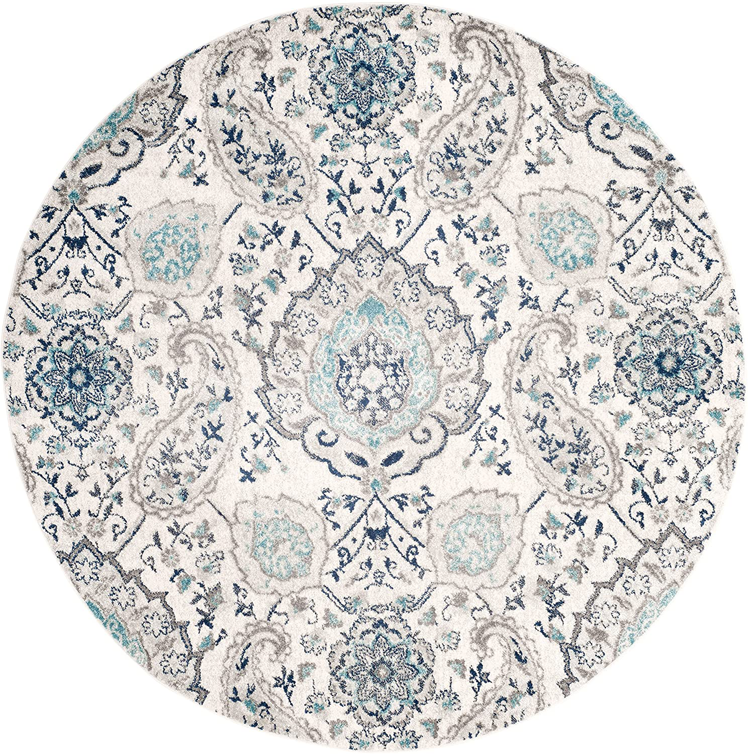 - One (1) Safavieh Madison Collection MAD600C Boho Chic Glam Paisley Non-Shedding Stain-Resistant Living Room Bedroom Area Rug, 4' x 4' Round, Cream / Light Gray