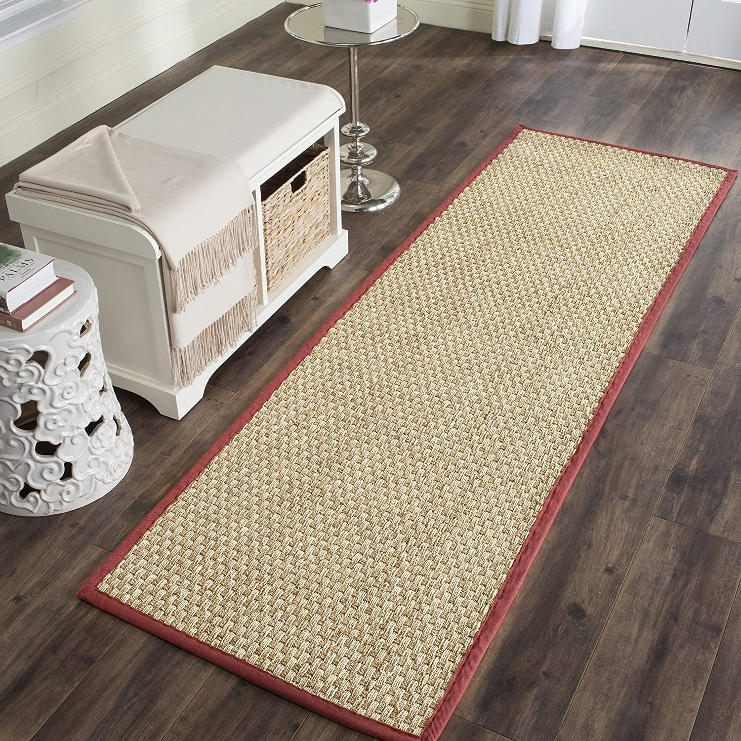 Rynx | Safavieh Natural Fiber Collection NF114D Border Basketweave Seagrass Runner, 2'6" x 8', Red