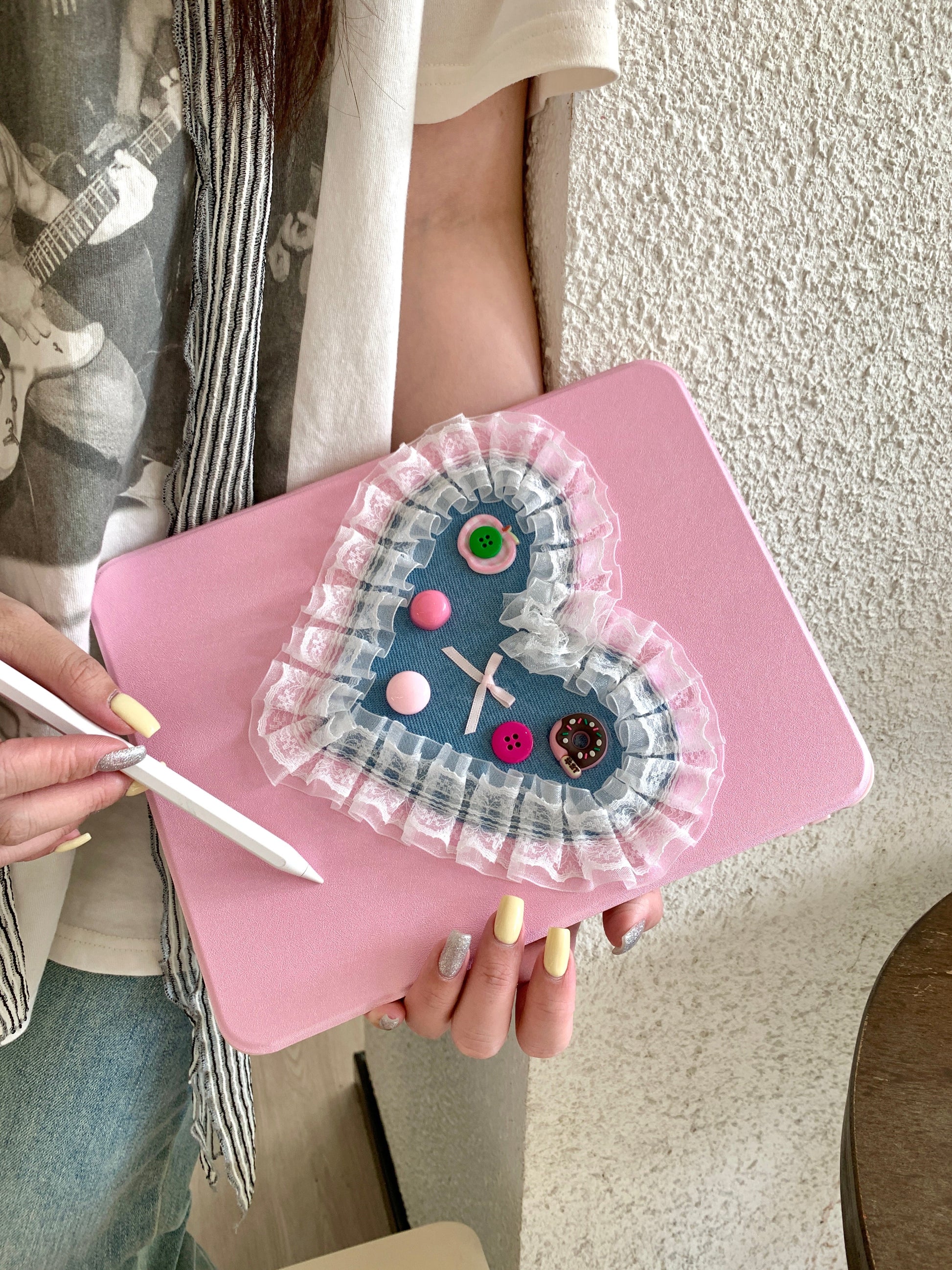 Rynx | Cute pink iPad case with heart lace design – Floral stand case