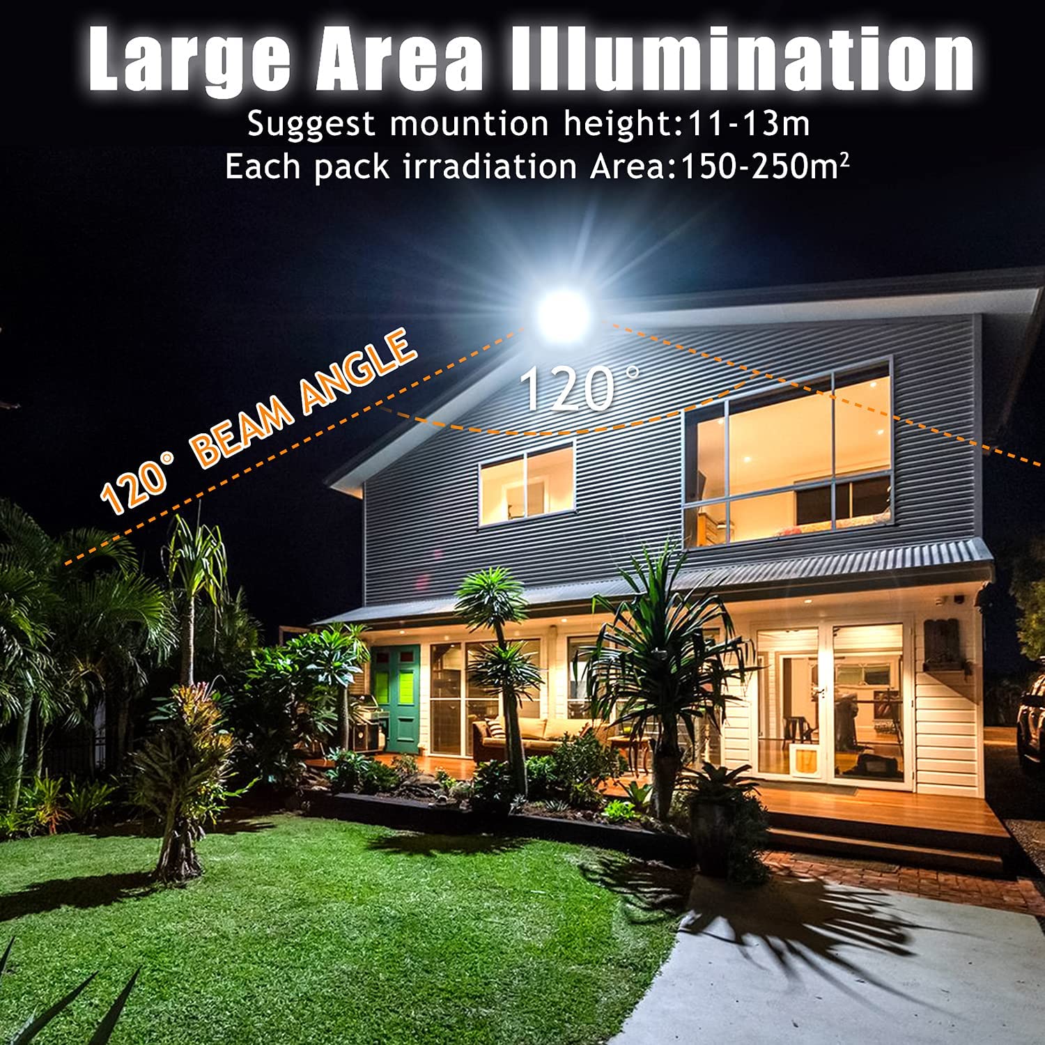- Unmatched Brightness: With a luminous flux of 18,000 lumens and a color temperature of 5000K, these floodlights ensure brilliant lighting, making them ideal for both residential and commercial use.