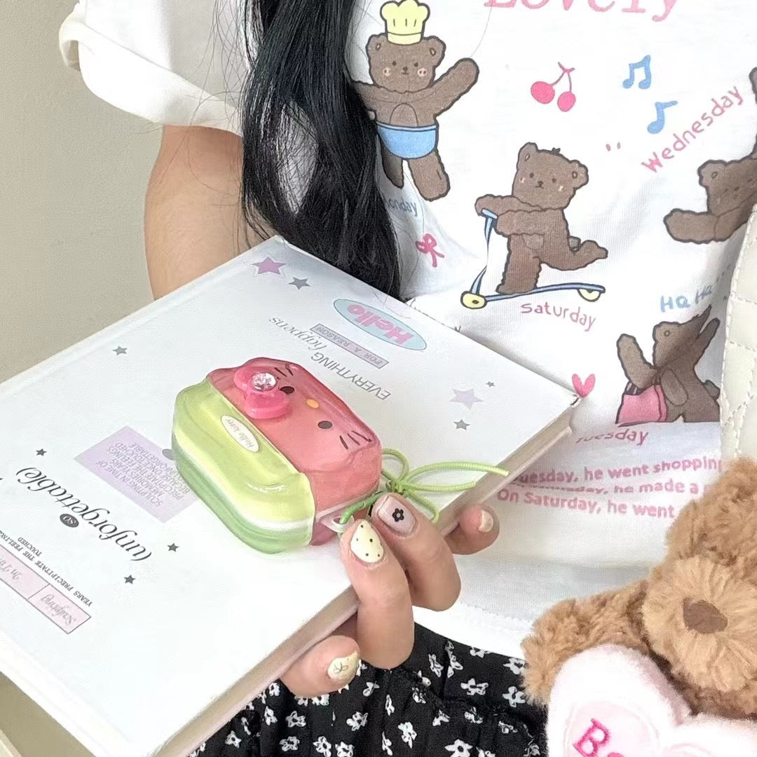 Rynx | Cute Kitty AirPods case and shiny pink & green with bow pendant
