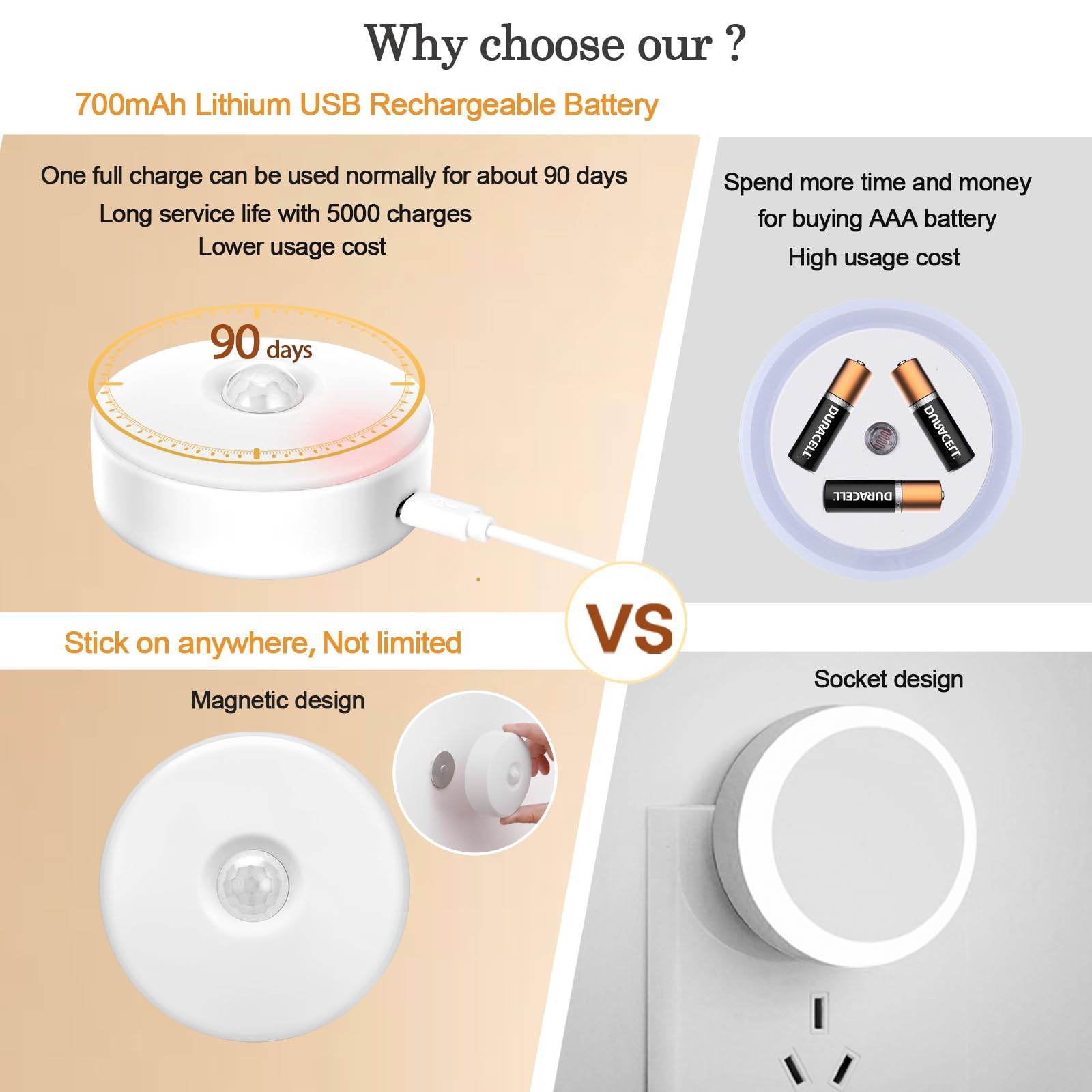 - **Cost and Time Savings**: Say goodbye to frequent purchases of AAA batteries! With a built-in 700mAh rechargeable lithium battery, this night light can be charged up to 500 times, offering over 90 days of light on a single charge. Save money and reduce waste with this eco-friendly solution.