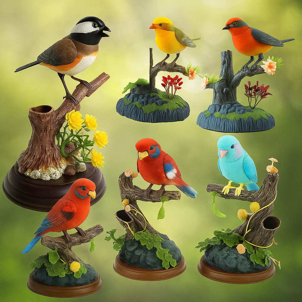 - Color: Offered in various shades mirroring real birds (blue tit, red cardinal, blue jay)