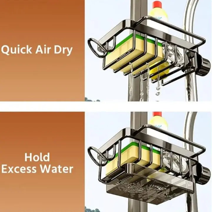 This practical organizer connects directly to your faucet, offering plenty of room for dish sponges, brushes, soaps, or steel wool. Its open design promotes efficient drying while the drip tray helps avoid water marks in the dish space. Crafted from stainless aluminum, it boasts durability, stability, and low maintenance requirements. Perfect for compact kitchens, elderly individuals, or those mindful of their space.