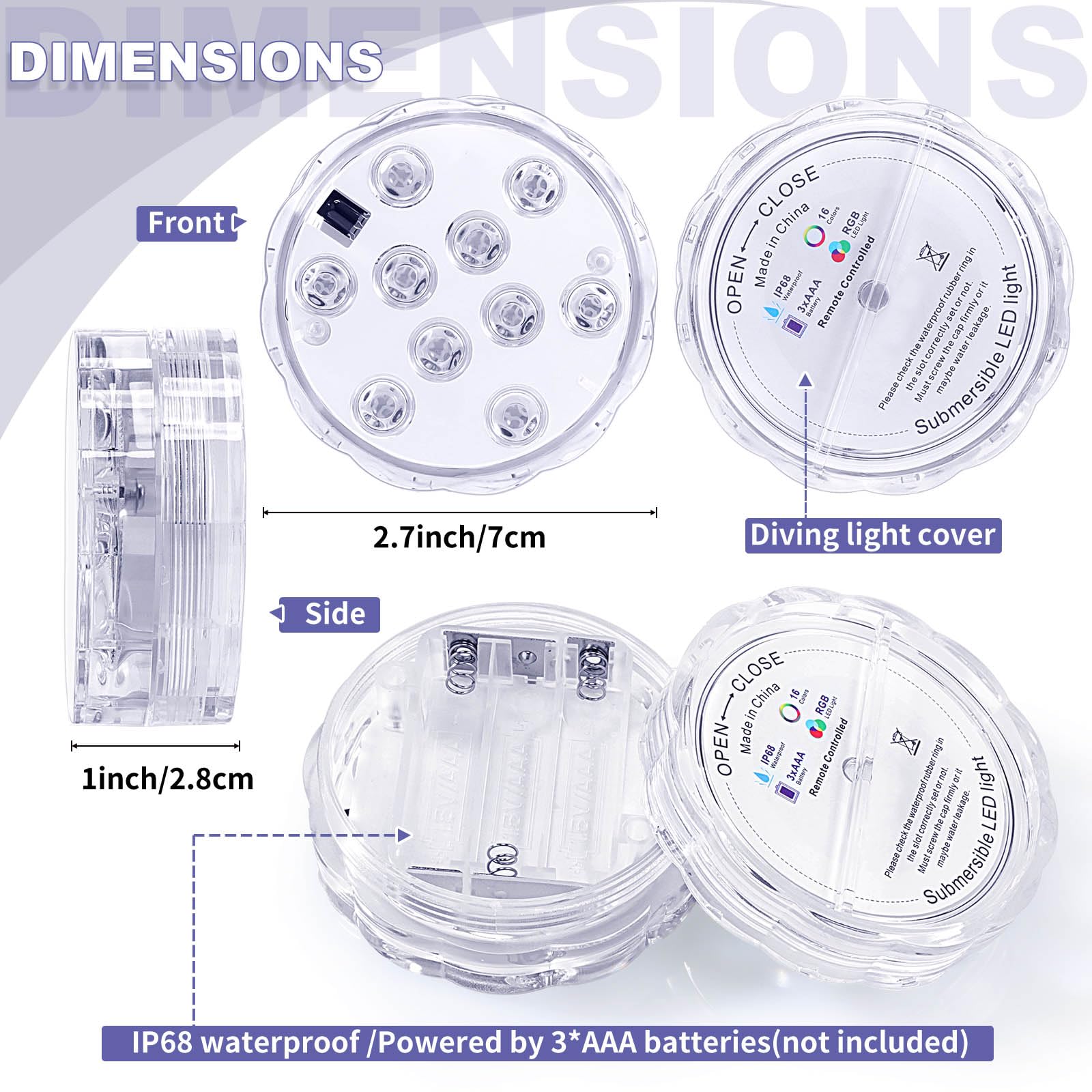 - **Versatile Applications**: These multicolored LED lamps are not only suitable for underwater use; they also excel in decorating for various events, including Halloween, Christmas, weddings, and parties. Illuminate your vases, aquariums, and even dry areas such as hallways or garages with ease.