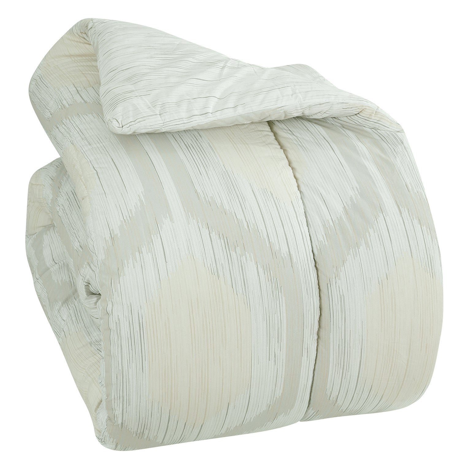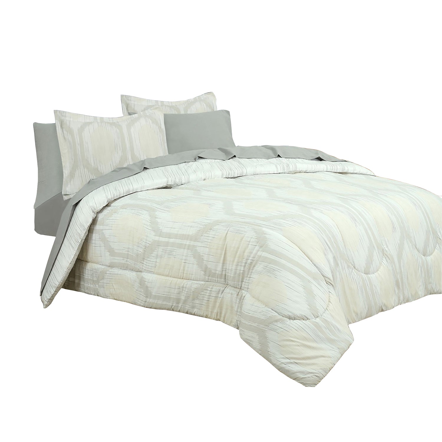 This geometric bedding set featuring a hexagon pattern blends a contemporary hexagon style with a strié effect in a neutral color palette, resulting in a transitional aesthetic that enhances any bedroom. The duvet cover showcases a strié stripe pattern on the reverse side in the same neutral shades. The accompanying bed set is crafted in a medium solid gray hue. This timeless combination of color and design will enhance almost any interior decor. All pieces are constructed from 100% brushed polyester microfiber to ensure your comfort throughout the night, and the easy-care fabric makes washing and drying a breeze. The Hexagon Strié Bed in a Bag comes in twin, full, queen, and king sizes, including a duvet, fitted sheet, flat sheet, pillowcase(s), and a pillow sham. This bedding set is ideal for master bedrooms, first apartments, teenagers, dorms, and more.