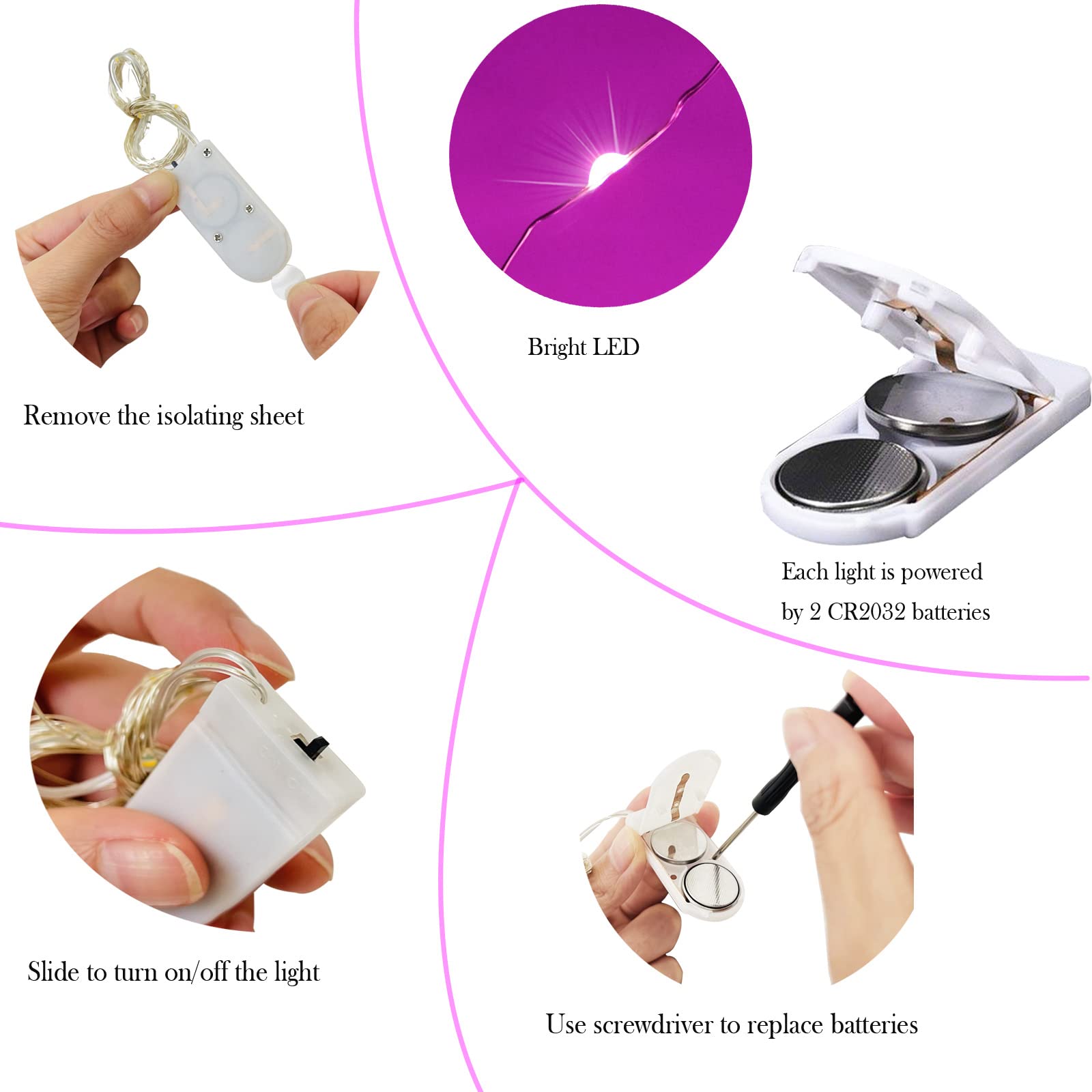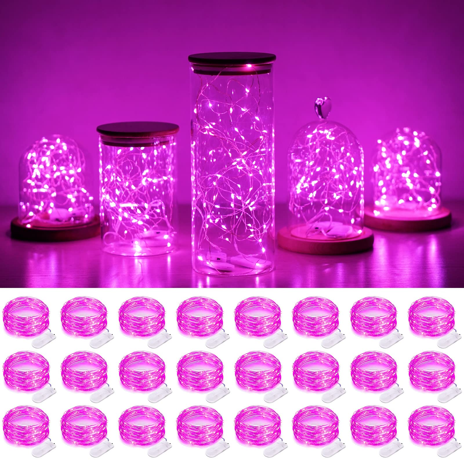 Rynx | Smilingtown 20 LED celebration light strings - 24 pack, 7.2Ft copper wire, pink for weddings & parties