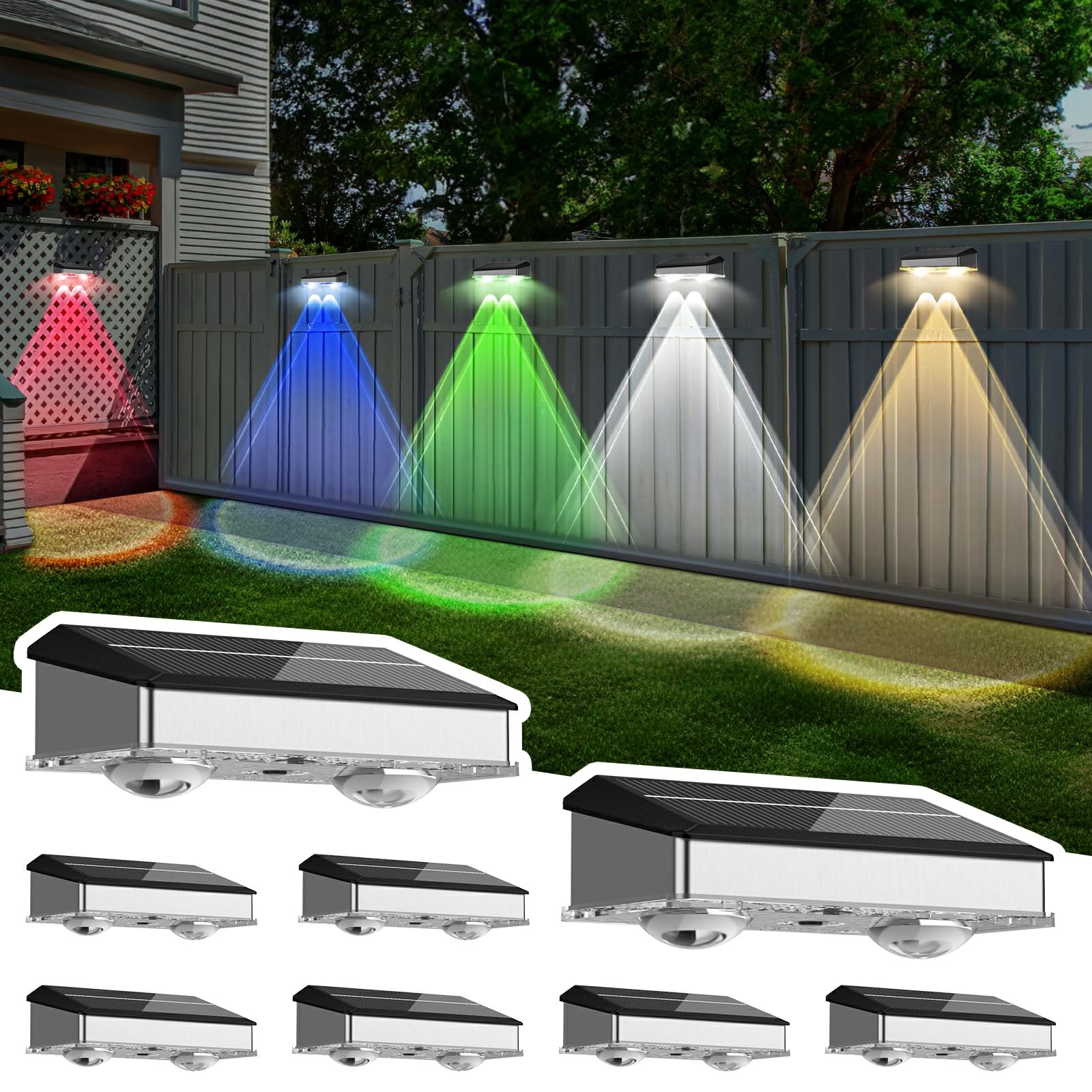 Our solar fence lights feature 8 fixed color modes: warm white, cool white, red, green, blue, yellow, cyan, and purple, along with an automatic RGB gradient mode. These options allow you to customize your lighting for any event, with special holiday modes such as red + green for Christmas, blue for Independence Day, and purple for Halloween. Elevate the style of your fence with these stunning lights!