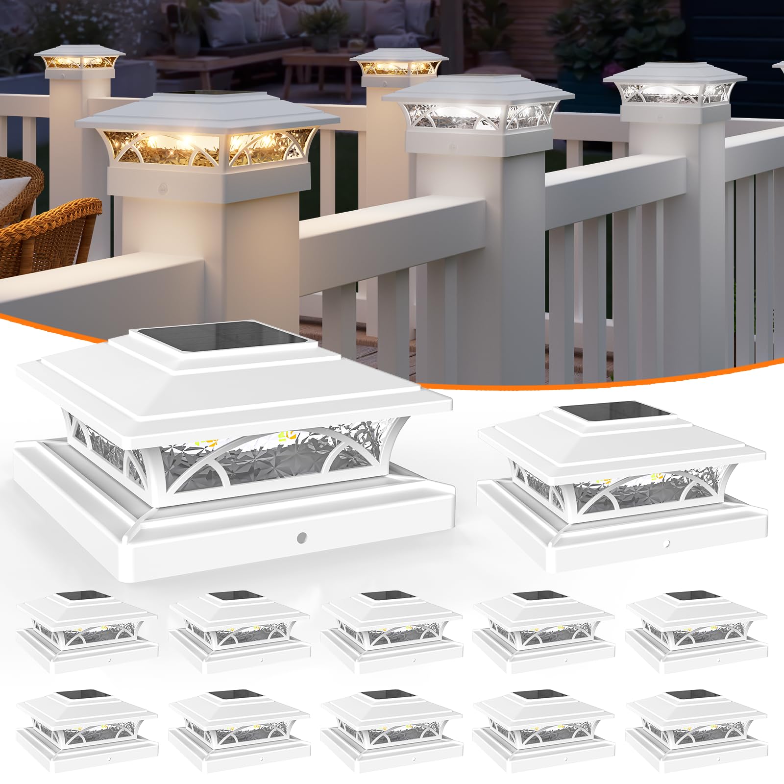 Aponuo Solar Light for Fencing, Solar Light Top Plates, Dual-Mode Solar Lighting for Outdoor Use, Waterproof Garden Patio Fence Lights for 4X4, 5X5, 6X6 Decks, Automatic On/Off, Easy to Install, White Pack of 12