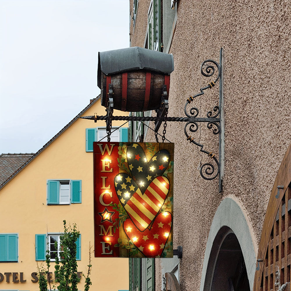 Rynx | Solar-powered patriotic welcome garden flag