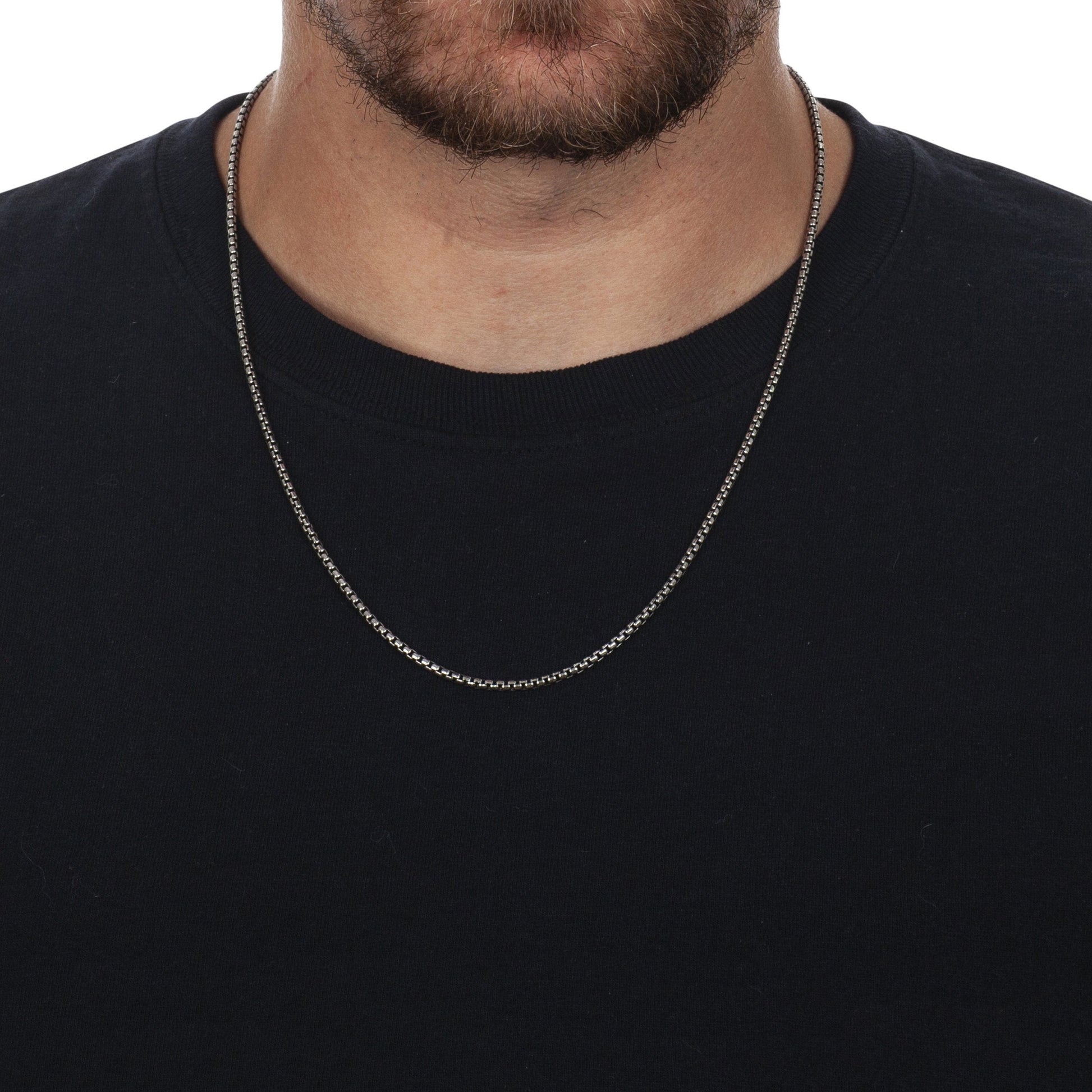 Necklace made of oxidized sterling silver, round box chain, black chain designed for men's pendants.
