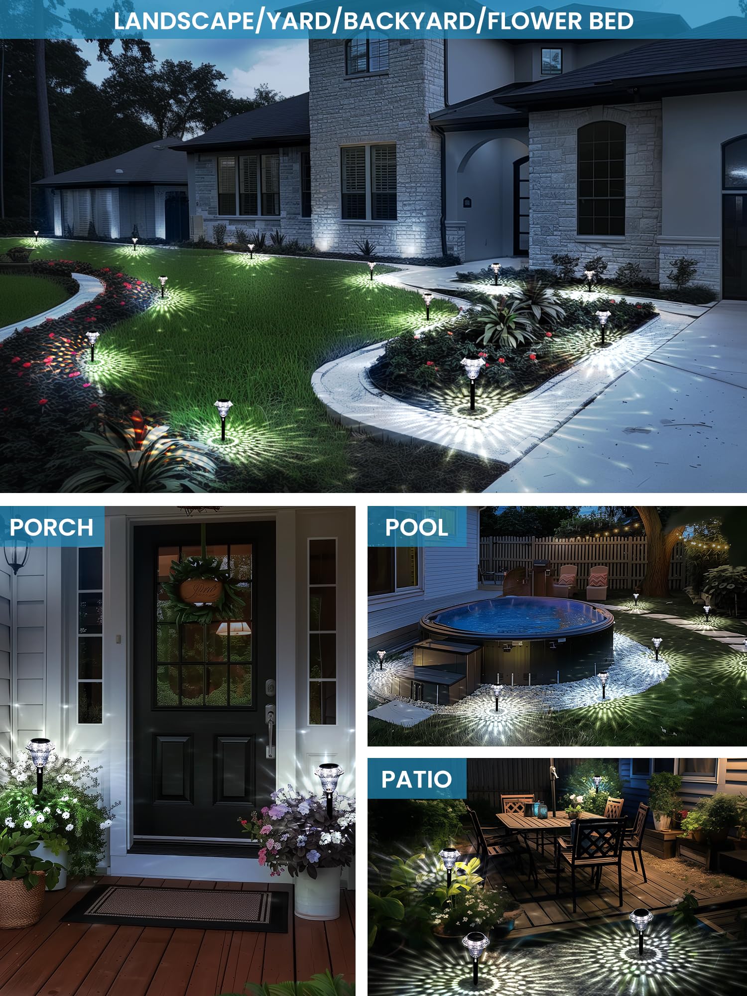 - **Versatility**: Perfect for multiple applications, these solar path lights fit seamlessly in walkways, gardens, patios, flower pots, driveways, and porches. They provide ample lighting while enhancing the decorative atmosphere of your outdoor areas, making them ideal gifts for mothers, friends, housewarming parties, and birthdays.