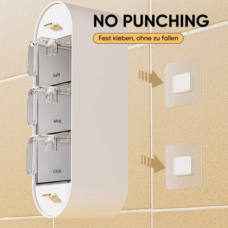 【Compact and Versatile】: The spice box can be easily mounted on the wall without any drilling, making it an excellent space-saving solution for your kitchen. It can also be arranged in various configurations, allowing you to tailor the design to meet your specific preferences.