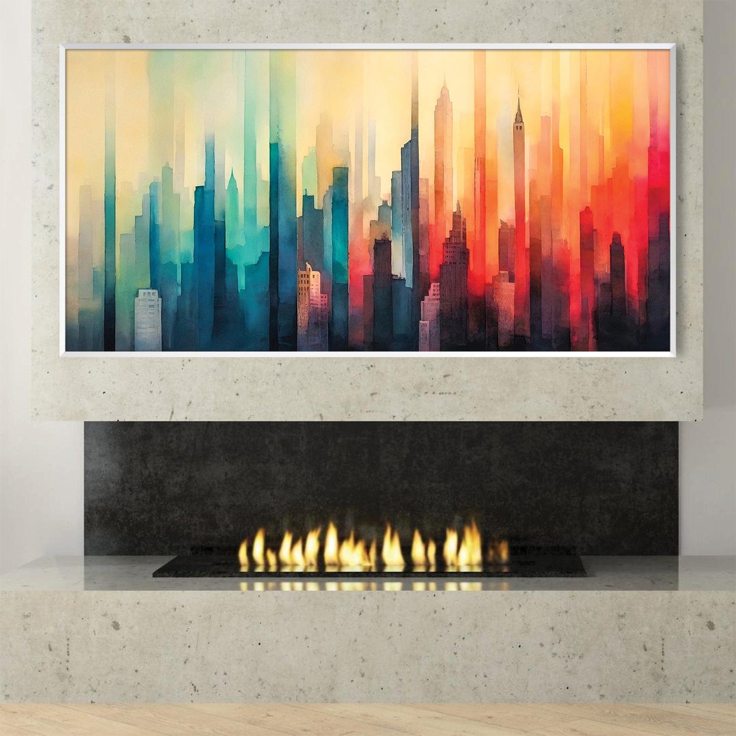 Discover the vibrant essence of urban life with 'Spectrum City', a stunning watercolor painting that captures the cityscape in a captivating watercolor effect. This canvas wall art beautifully blends hues of yellow, red, and blue, encapsulating the colorful spectrum that defines city living. The title 'Spectrum City' aptly reflects the lively and vibrant dynamics of urban life, with each brushstroke adding depth and character to the animated city scene. Whether showcased as a simple wall decoration or as a framed centerpiece, 'Spectrum City' transports you into the ever-evolving spirit of the city in a manner that is both artistic and engaging. Allow the energetic character of the city to enhance your home with this remarkable piece of art.
