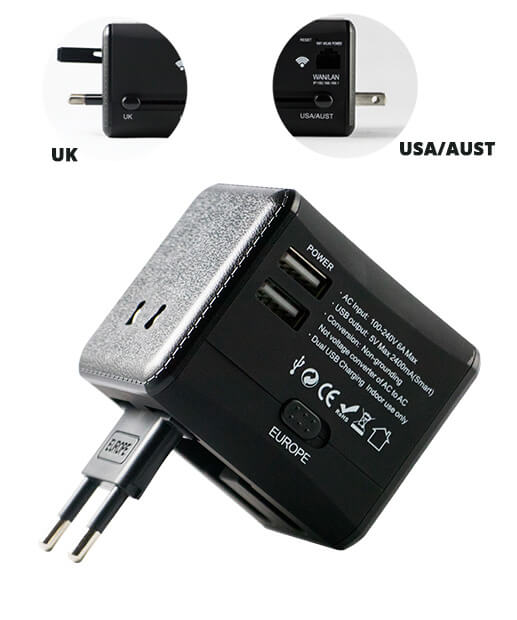 SpeedPro by RANGEXTD establishes a private, password-protected Wi-Fi network simply by plugging it into a socket in any country, ensuring secure internet access no matter where you are. Its versatile design features multiple plug pins, allowing you to connect and charge your devices in over 150 countries, including Australia, the UK, Europe, and Asia. With two USB ports, it also serves as a robust charger for your devices.