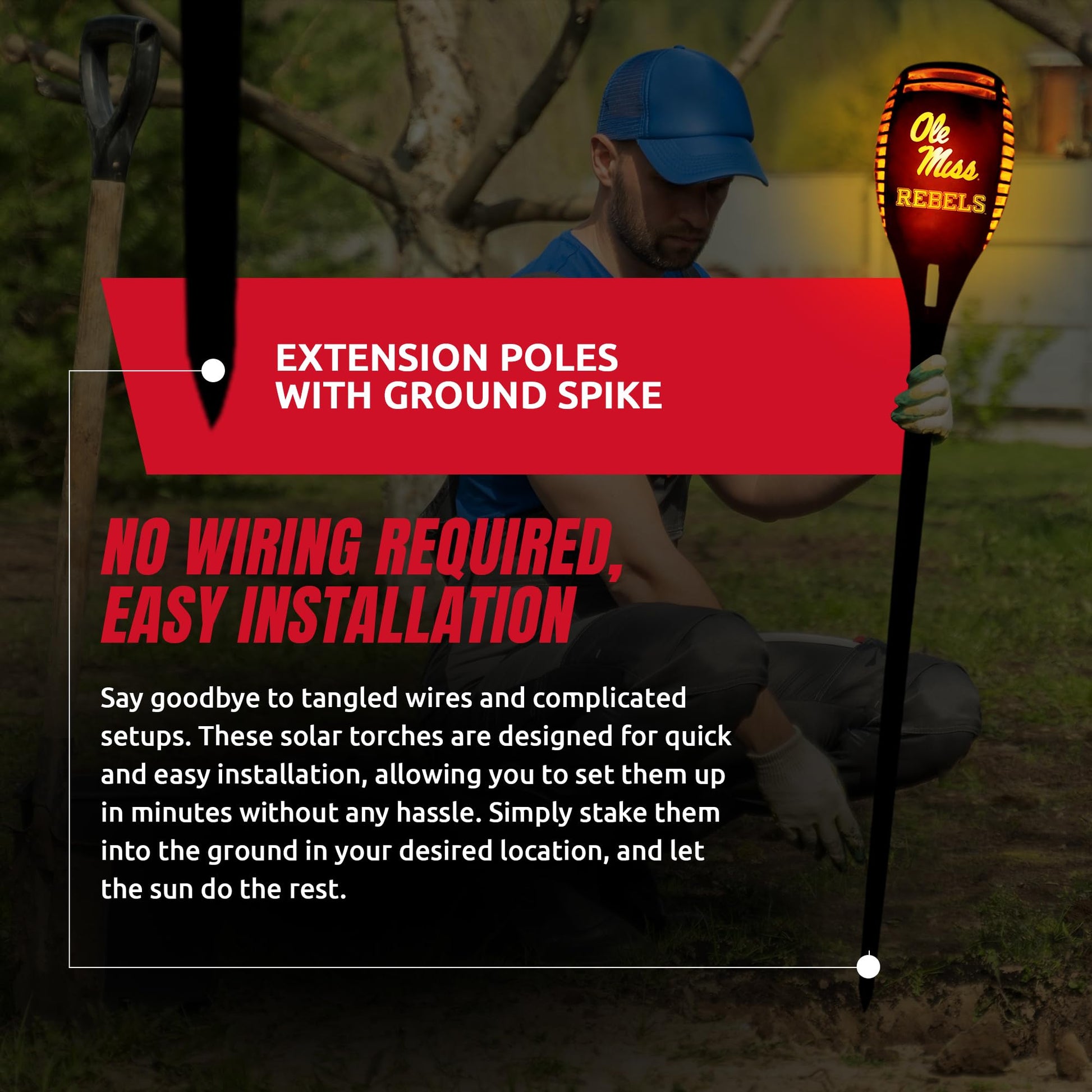 Elevate your outdoor atmosphere while showcasing your team pride with the Ole Miss Solar LED Torch. Its combination of functionality and team spirit makes it an easy choice for any Ole Miss supporter looking to add a touch of elegance to their outdoor spaces.